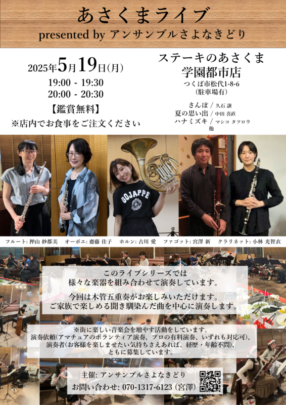 今回も木管五重奏で演奏しました。