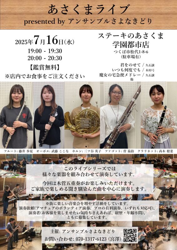 大人の方でも楽器経験者の方、ご本人でなくてもお知り合いにそういう方がいらっしゃったら、ぜひ一緒に演奏しませんか。