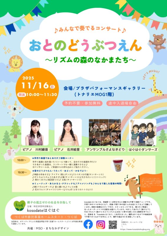 ※「kosodateはぐはぐ」は、ボランティアによる家庭訪問型子育て支援「ホームスタート」(つくば市委託事業)を運営しています。