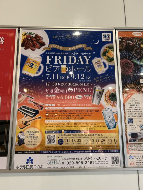 ホテル日航つくばのレストランセリーナで「セリーナFRIDAYビアホール」で演奏しました。